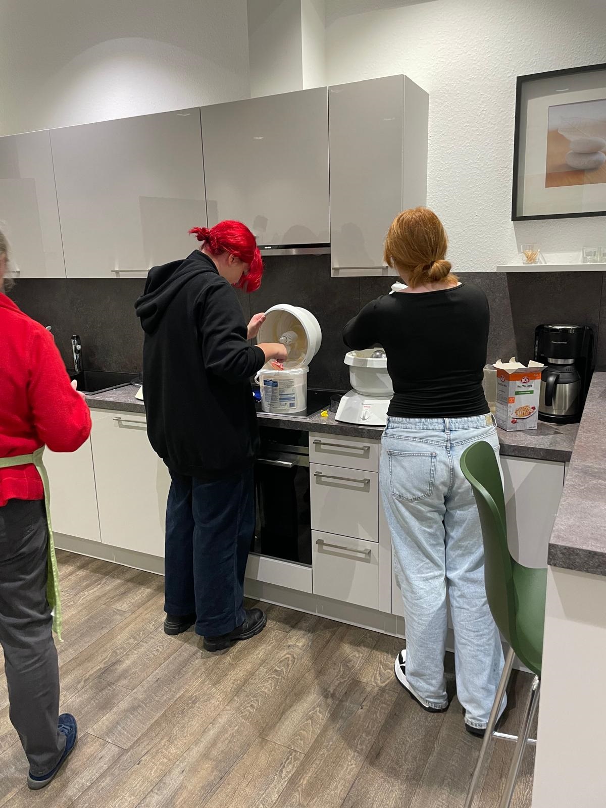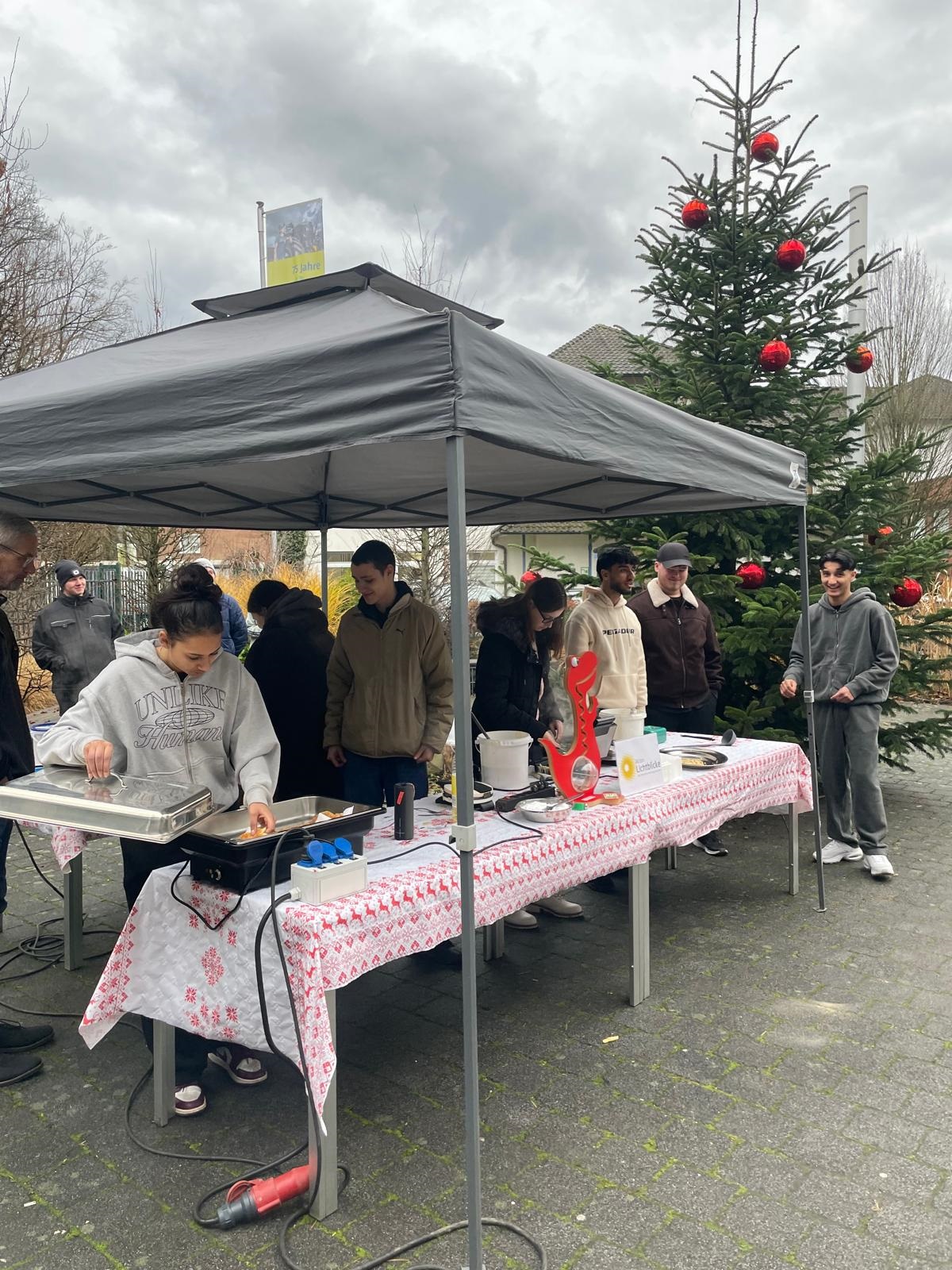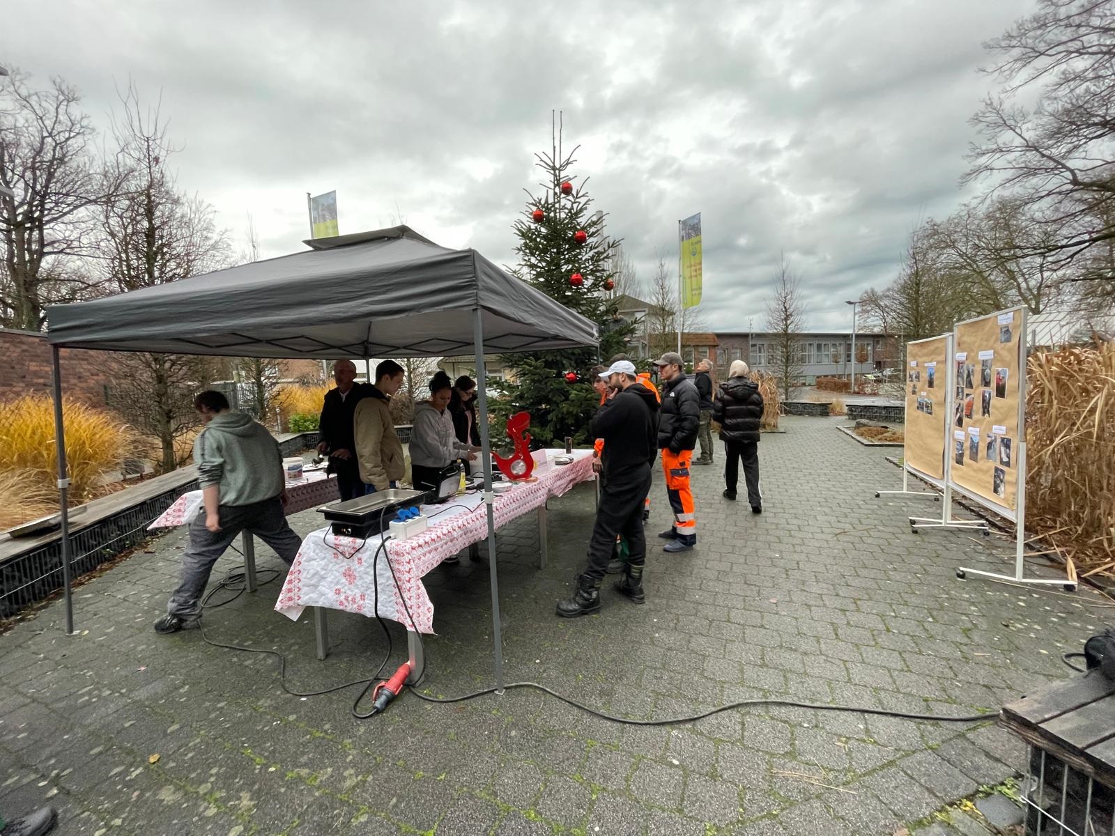 Unsere BvB-Teilnehmenden haben an der DEULA sechs Stunden lang Waffeln gebacken und verkauft – direkt im Zelt neben dem Weihnachtsbaum. Dabei wurde nicht nur verkauft, sondern auch informiert: Der gesamte Erlös geht an „Lichtblicke“ – und es wurde zusätzlich um Spenden geworben.